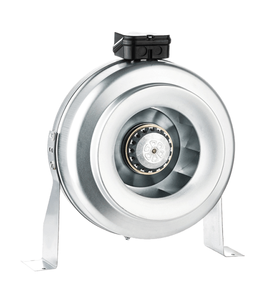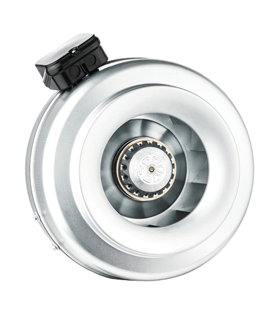 Rohrventilator als Zwischenbauteil für niedriges bis mittleres Fördervolumen mit leistungsstarkem EC-Motor für effiziente Energie- und Kosteneinsparung